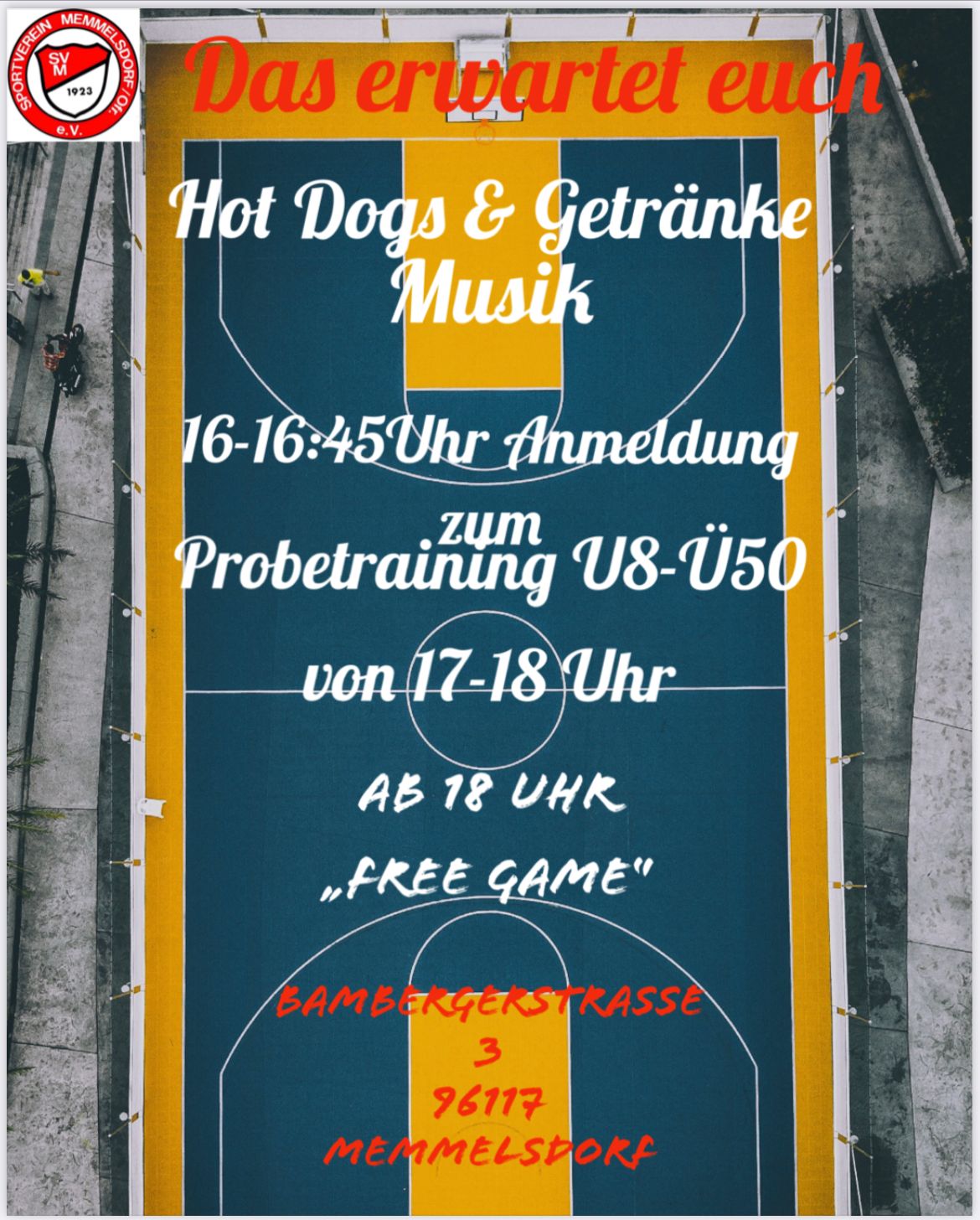 Der SV Memmelsdorf lädt zum Basketball Probetraining am 05.08.2023.