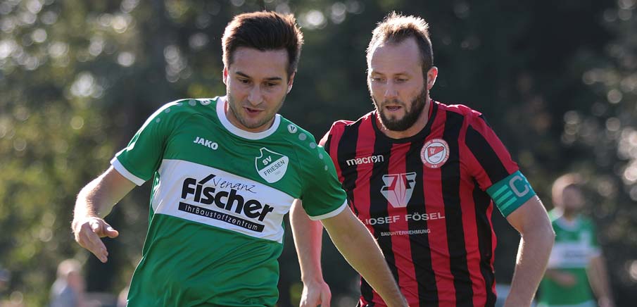 Für die Heimelf war es ein immens wichtiges Spiel. Man wollte sich nach der 1:5-Klatsche in Coburg rehabilitieren und mit einem Heimsieg zurück in die Spur finden. Für den SV Memmelsdorf ging es darum, sich weiterhin im Tabellenvorderfeld festzusetzen und ebenfalls Zählbares aus dem Frankenwald mit nach Hause zu nehmen. SVM-Führung zum psychologisch wichtigen Zeitpunkt Von Beginn an merkte man der Heimelf noch die Verunsicherung an, die man aus dem letzten Spiel in Coburg innehatte. Man verlor deutlich mit 1:5 in einer Art und Weise, die nicht zu akzeptieren war. Nun galt Wiedergutmachung, die zu Beginn noch schwer fiel. Dementsprechend kam die Mannschaft von Spielertrainerduo Wernsdorfer/Saal besser ins Spiel und hatte nach fünf Minuten ihre erste sehr gute Aktion. Nach einem Eckball von Max Hüttner stieg Torjäger Luis Grasser im Zentrum alleingelassen am höchsten, scheiterte aber am sehr gut reagierenden Tobias Bauerschmidt im SVF-Kasten. Das hätte bereits der frühe Nackenschlag für die Heimelf sein können, doch der formstärkste Friesener in aktuellen Tagen wusste dies zu verhindern. Nach einer kurzen Abtastphase fand die Heimelf dann immer besser rein ins Spiel, hatte einige gute Aktionen verzeichnen können, doch die letzte Konsequenz fehlte noch im Spiel nach vorne. Die beste Chance hatte dann Nils Firnschild nach 20 Minuten, als er fein durch die Schnittstelle bedient wurde, doch SVM-Schlussmann Thomas Schuberth gedankenschnell aus seinem Tor eilte und den Abschluss parieren konnte. Drei Minuten später nickte Rico Nassel nach Daumann-Hereingabe über die Latte, als die Frankenwälder nun die etwas aktivere und bessere Mannschaft waren. Nach einer knappen halben Stunde Spielzeit war es Nils Firnschild, der Lukas Mosert mit einem starken Heber durch die Gasse schickte. Doch sein Abschlussversuch wurde im letzten Moment noch unterbunden. Direkt nach dem nachfolgenden Eckball schaltete Memmelsdorf blitzschnell um, als Fabian Trunk mit dem Leder über den fast kompletten Platz marschierte und querlegte zu Torjäger Grasser. Der zögerte den Tick zu lange, sodass Jonathan Müller ihn noch rechtzeitig abgrätschen konnte. Nun war die Zeit des SVM gekommen, der nun wieder die Spielkontrolle übernahm und durch Spielertrainer Michael Wernsdorfer zwei gute Aktionen hatte. Beide Male konnte aber Friesen im Defensivverbund klären. Als dann das Spiel zum Ende der ersten Halbzeit immer mehr dahinplätscherte, fiel nach einer Unachtsamkeit in der heimischen Hintermannschaft das 0:1 für die Gäste aus der Schmittenau. Nach einem Abschlag von Thomas Schuberth wurde der Ball immer länger und landete ca. 25 Meter vor dem Tor, wo Lukas Schuberth Luis Grasser durch die Schnittstelle bedienen konnte. Er hatte dann keine Mühe einzuschieben, auch wenn Bauerschmidt noch dran war und ein Friesener Akteur fast noch retten konnte. Das war das 0:1 zu einem immens wichtigen Zeitpunkt aus Sicht der Gäste, die damit in die Halbzeit gehen konnten.