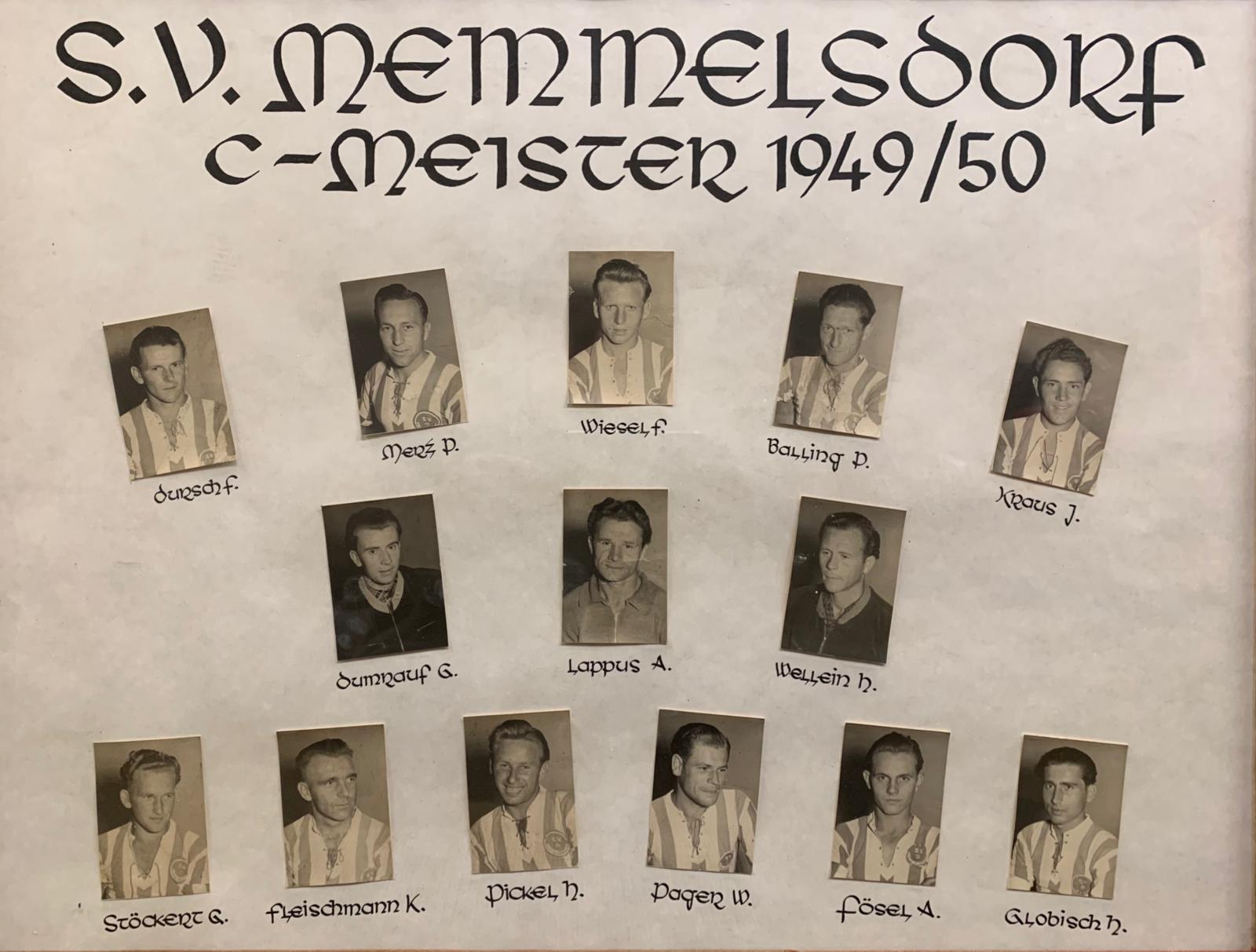Die Spieler der Memmelsdorfer C-Meister Elf von 1949/50: