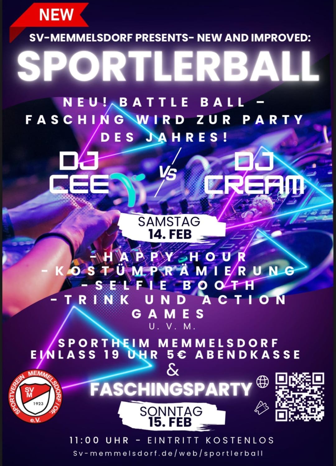 Der Sportlerball 2026 findet am 14. Februar im Sportheim Memmelsdorf statt.